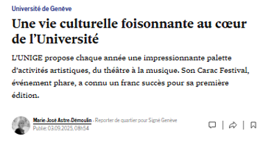 - 03.09.25 | Tribune de Genève | Une vie culturelle foisonnante au cœur de l’Université